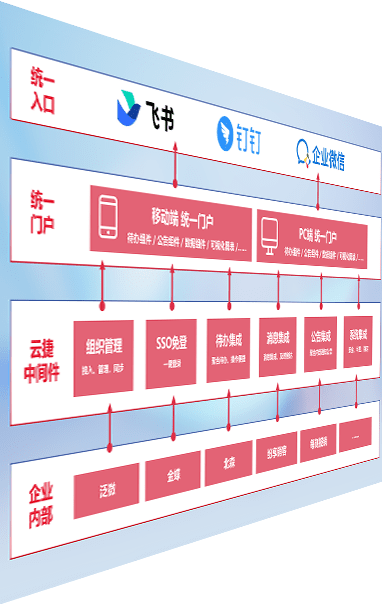 对协作平台提供支持服务,,支持企业应用与协作平台对接,,,包含组织同步、、、消息集成、、、待办集成等。。。。支持目前主流的协作平台:钉钉、、企微和飞书。。。。